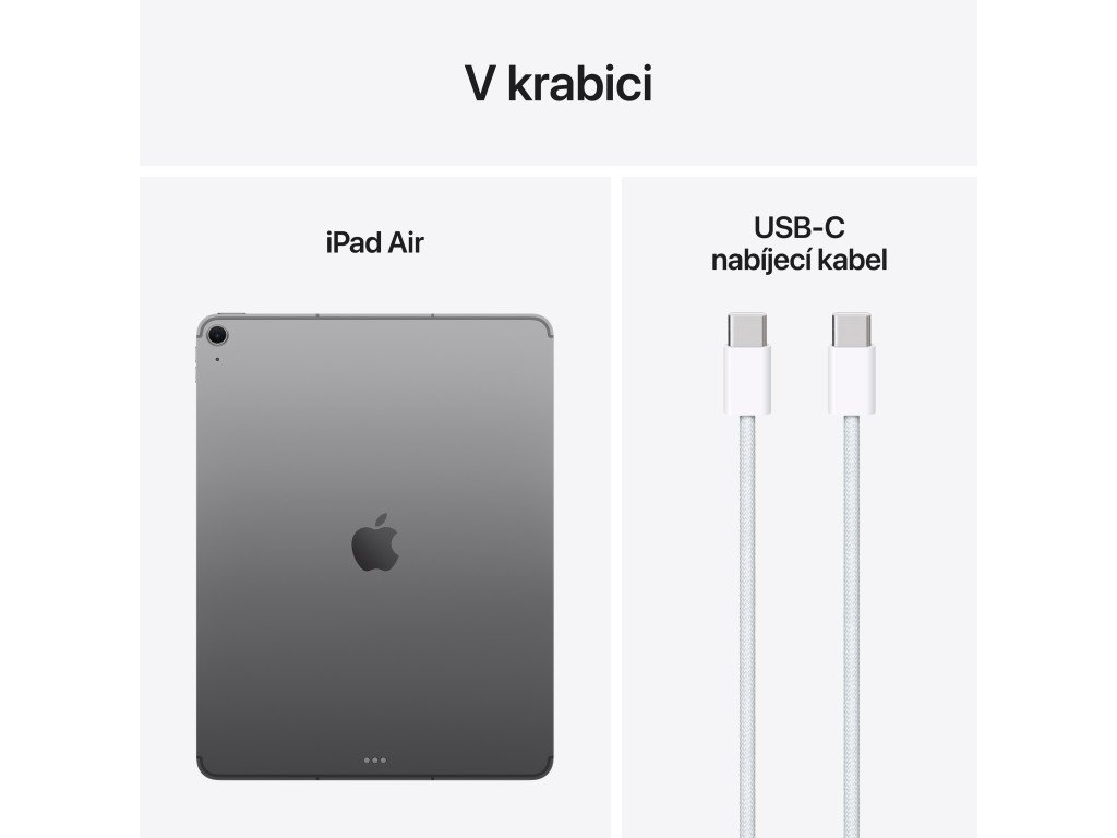 Tablet - displej 13" QHD 2732 × 2048 IPS, Apple M3 s 9jádrovou GPU, RAM 8GB, kapacita úložiště 256GB, WiFi, Bluetooth, 5G, GPS zadní fotoaparát 12 Mpx (f/1,8), přední fotoaparát 12 Mpx (f/2), USB-C, iPadOS 18