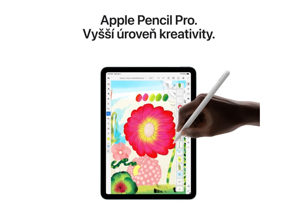Tablet - displej 11" QHD 2360 × 1640 Liquid Retina, Apple M4 s 9jádrovou GPU, RAM 12 GB, kapacita úložiště 512GB, WiFi, Bluetooth, GPS, 5G, zadní fotoaparát 12 Mpx (f/1,8), přední fotoaparát 12 Mpx (f/2), USB-C