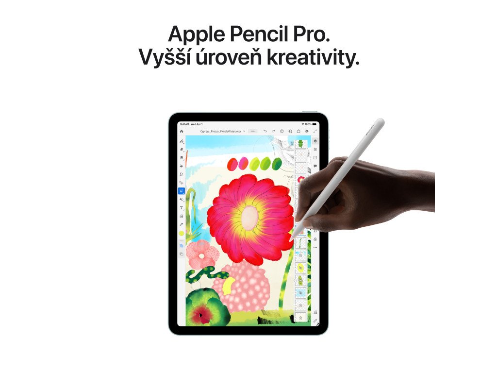 Tablet - displej 13" QHD 2732 × 2048 Liquid Retina, Apple M4 s 9jádrovou GPU, RAM 12 GB, kapacita úložiště 1TB, WiFi, Bluetooth, GPS, 5G, zadní fotoaparát 12 Mpx (f/1,8), přední fotoaparát 12 Mpx (f/2), eSIM, USB-C