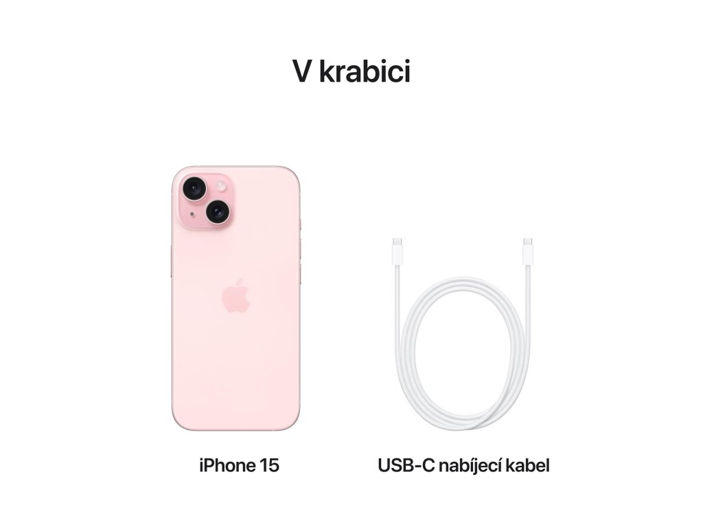 Mobilní telefon, 6,1" Super Retina XDR displej, 2556 × 1179, procesor A16 Bionic, 48MP hlavní fotoaparát, 4K video při 60 fps, Face ID, USB-C konektor, Dynamic Island, iOS 17.