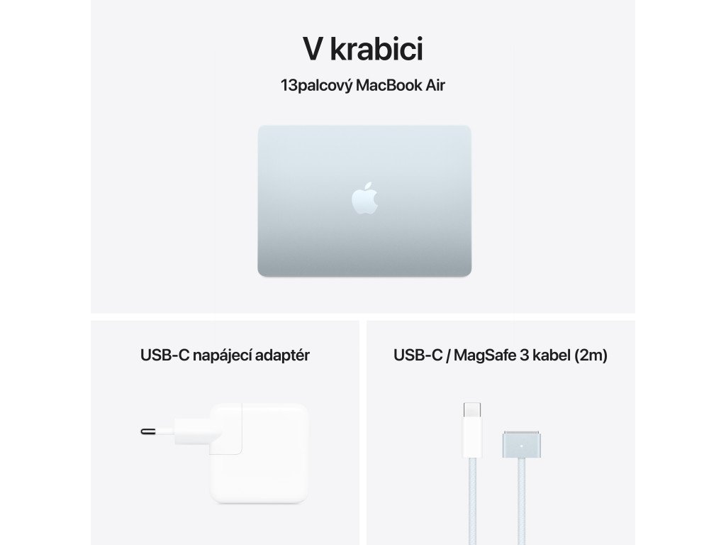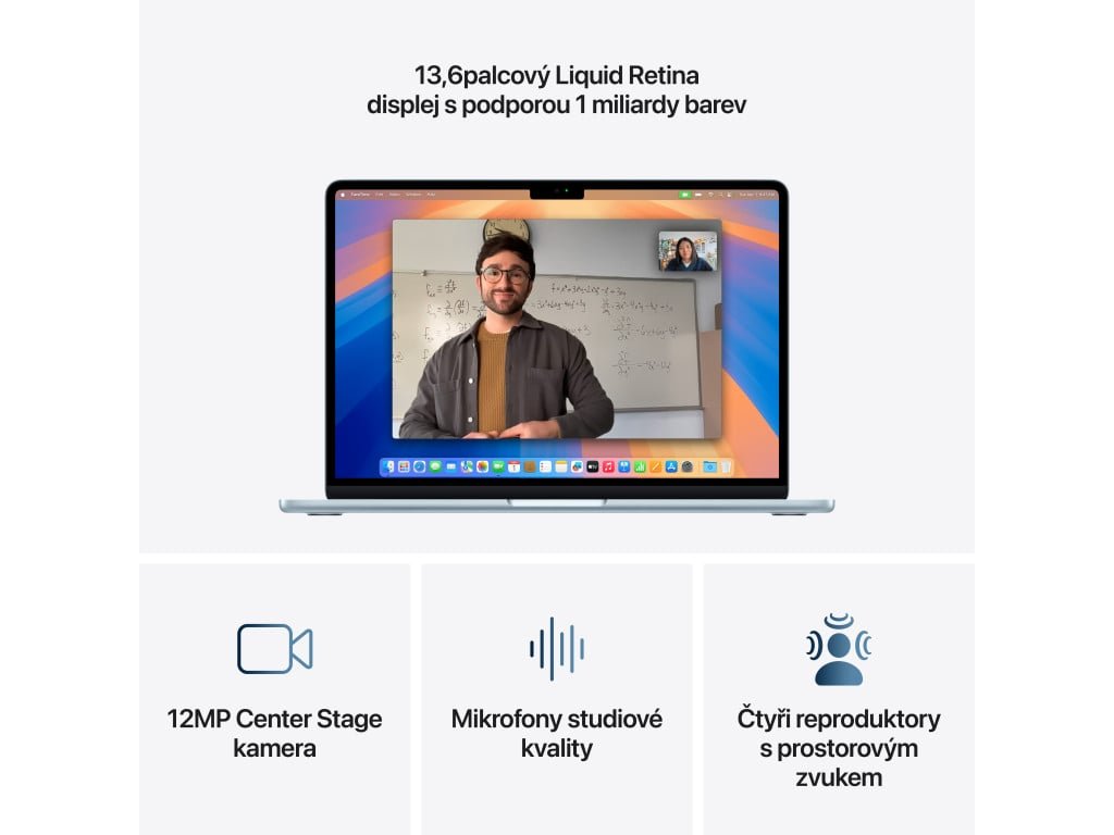 Apple MacBook Air 13 - Apple M4 (10jádrový), 13,6" IPS lesklý 2560 × 1664 px, RAM 16GB, Apple M4 10jádrová GPU, 512GB SSD, podsvícená klávesnice, webkamera, hmotnost 1,24 kg, macOS.