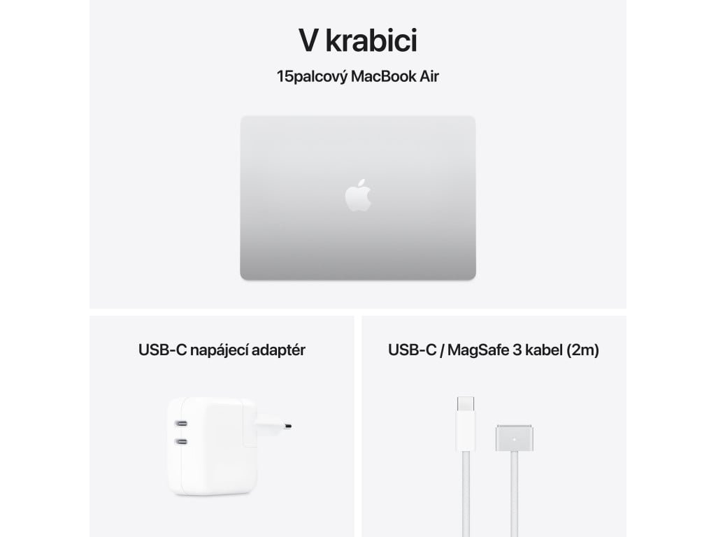 Apple MacBook Air 15 - Apple M4 (10jádrový), 15,3" IPS lesklý 2880 × 1864 px, RAM 16GB, Apple M4 10jádrová GPU, 512GB SSD, webkamera, USB-C, čtečka otisků prstů, WiFi 6, hmotnost 1,51 kg, macOS.