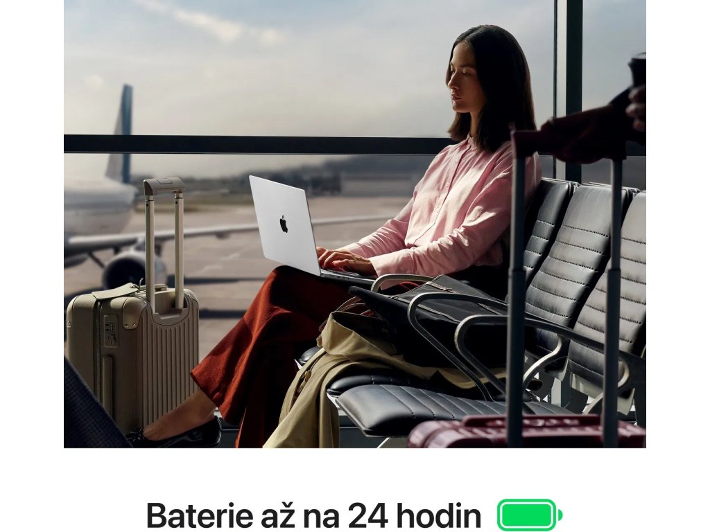 MacBook s čipem Apple M5 (10jádrový), 14,2" Liquid Retina XDR displej 3024 × 1964 px, 120Hz, 16GB RAM, 1TB SSD, 10jádrová GPU, Wi-Fi 6E, čtečka otisků, podsvícená klávesnice, macOS, 1,55kg.