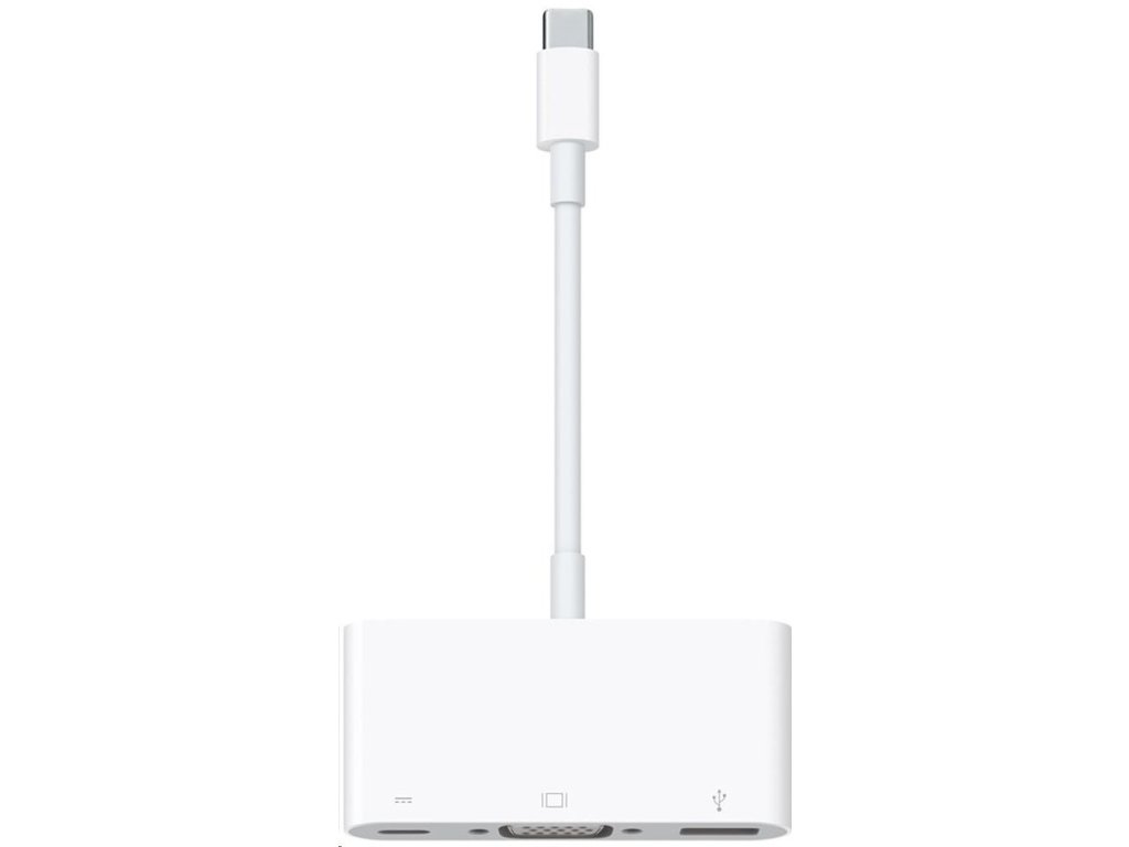 USB-C víceportový VGA adaptér umožňuje zrcadlit displej Macu na televizi nebo displeji s rozhraním VGA v HD rozlišení až 1080p. Přenáší taky video obsah jako filmy nebo digitalizované video. Jednoduše adaptér připoj k Thunderbolt 3 (USB-C) portu na Macu a pak VGA kabelem (prodává se zvlášť) k televizi nebo projektoru.