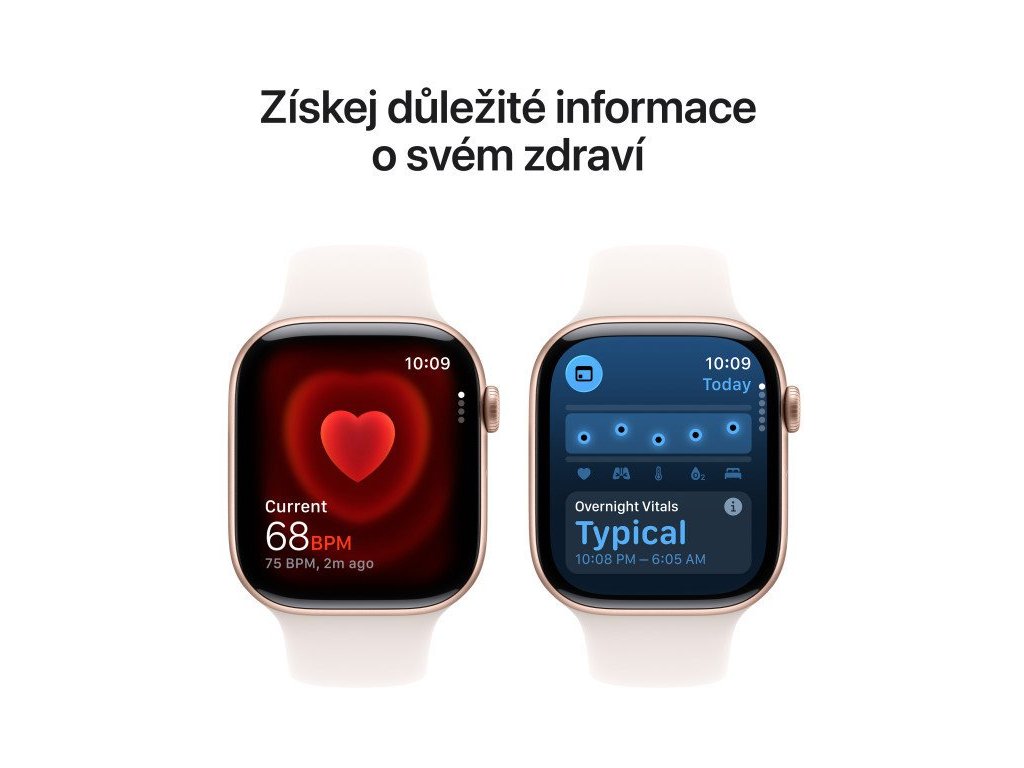 Smartwatch – OLED displej, NFC platby přes Apple Pay, Bluetooth, GPS, WiFi, LTE, volání přes spárovaný telefon, krokoměr, měření kyslíku v krvi, EKG, měření tepu, monitoring spánku, vodotěsnost 50 m (5 ATM), ovládání v češtině, kompatibilní s iOS.