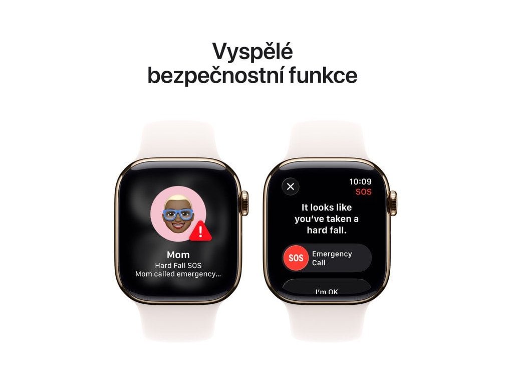 Smartwatch – OLED displej, senzor srdečního tepu, EKG, měření kyslíku v krvi, krokoměr, měření spánku, NFC (Apple Pay), Bluetooth, GPS, WiFi, LTE, vodotěsnost 5 ATM, české ovládání, kompatibilní s iOS