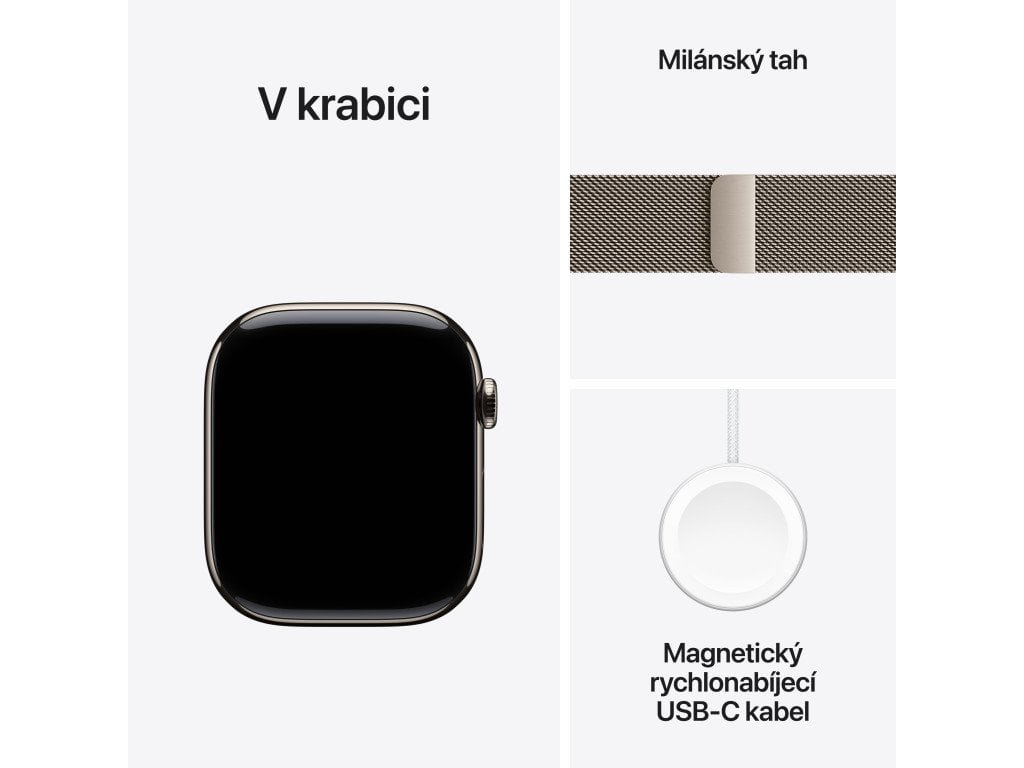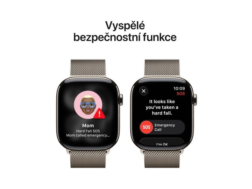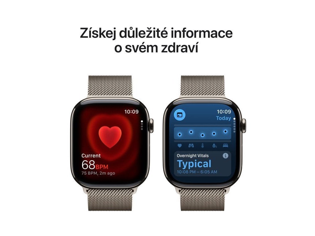 Smartwatch – OLED displej, senzor srdečního tepu, EKG, měření kyslíku v krvi, krokoměr, monitoring spánku, NFC (Apple Pay), Bluetooth, GPS, WiFi, LTE, vodotěsnost 5 ATM, české ovládání, kompatibilní s iOS