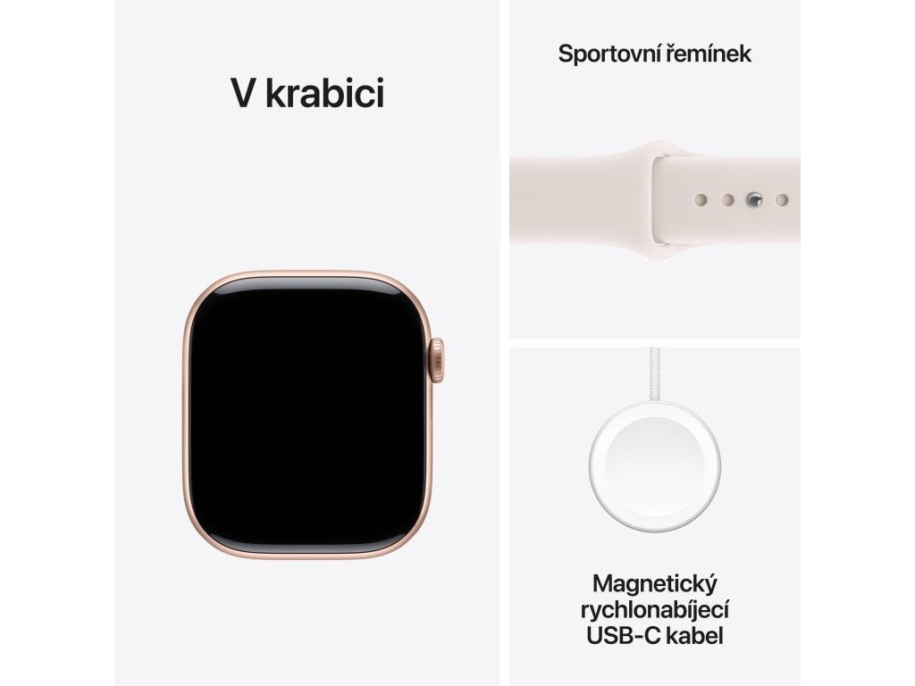 Smartwatch – OLED displej, senzor srdečního tepu, EKG, měření kyslíku v krvi, monitoring spánku, krokoměr, NFC (Apple Pay), Bluetooth, GPS, WiFi, LTE, vodotěsnost 5 ATM, české ovládání, kompatibilita s iOS
