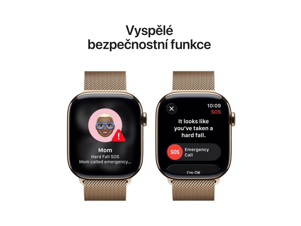 Smartwatch – OLED displej, senzor srdečního tepu, EKG, měření kyslíku v krvi, krokoměr, měření spánku, NFC (Apple Pay), Bluetooth, GPS, WiFi, LTE, vodotěsnost 5 ATM, české rozhraní, kompatibilní s iOS