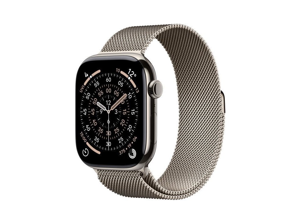 Smartwatch – OLED displej, senzor srdečního tepu, EKG, měření kyslíku v krvi, krokoměr, monitoring spánku, NFC (Apple Pay), Bluetooth, GPS, WiFi, LTE, vodotěsnost 50 m (5 ATM), ovládání v češtině, kompatibilní s iOS.