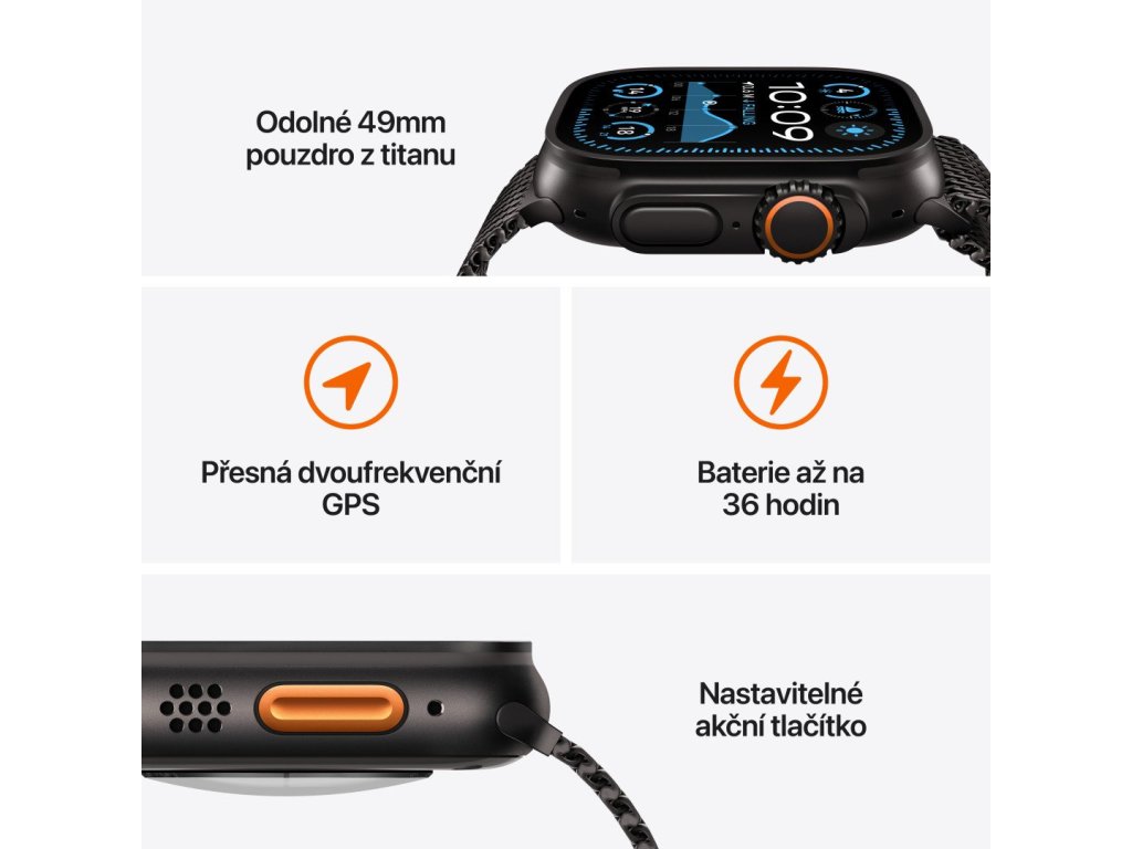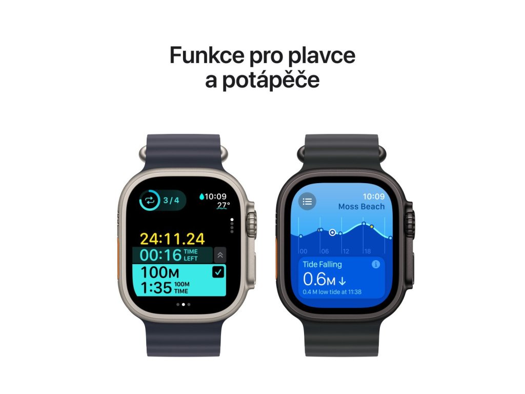Chytré hodinky, OLED displej, NFC platby skrze Apple Pay aplikaci, Bluetooth 5,3, GPS, WiFi, LTE, krokoměr, měření kyslíku v krvi a EKG, monitoring spánku, měření tepu, vodotěsnost 100 m (10 ATM), maximální výdrž baterie 36h.