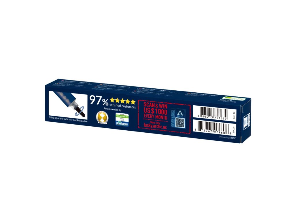 Pasta Arctic MX-4 2019 edice s vysokou tepelnou vodivostí a nízkým tepelným odporem pro komponenty, které vyžadují optimální rozptyl tepla. Pasta neobsahuje žádné kovové části a je elektricky nevodivá.