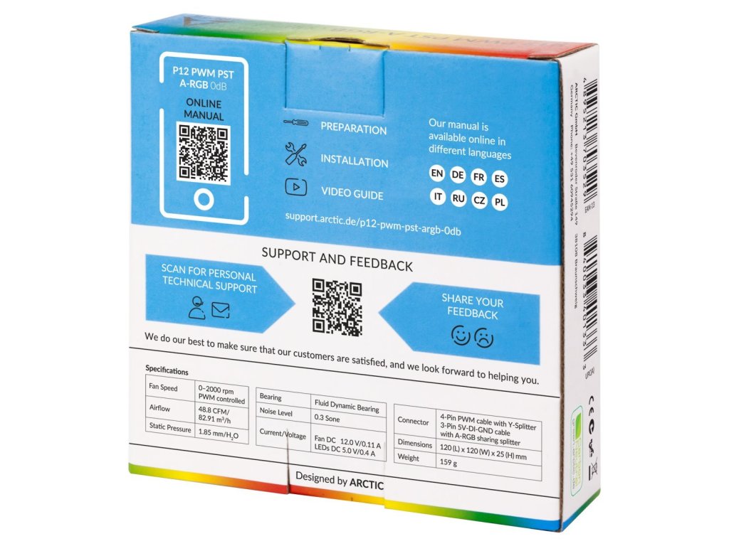 Extra účinný ventilátor ze série Arctic "P" – high pressure. Tedy model optimalizovaný pro maximální statický tlak, ideální pro věžové chladiče, pro radiátory vodního chlazení, do kejsu, kde je málo místa a v cestě stojí další komponenty a všude, kde je potřeba, aby vzduch prošel přes překážky v podobě dalších komponentů. 120mm ventilátor automaticky řízený PWM PST signálem z procesoru počítače do zbytku ventilačního systému. Celý systém je tak chlazen velmi tiše, nicméně nabízí vynikající výkon v situaci, kdy je to potřeba. A-RGB pro plnou kontrolu nad osvětlením.
