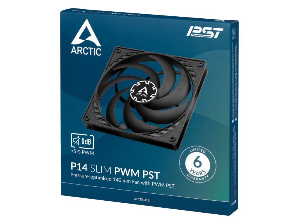 Extra účinný ventilátor ze série Arctic "P" – high pressure. Tedy model optimalizovaný pro maximální statický tlak, ideální pro věžové chladiče, pro radiátory vodního chlazení, do kejsu, kde je málo místa a v cestě stojí další komponenty a všude, kde je potřeba, aby vzduch prošel přes překážky v podobě dalších komponentů. 140mm ventilátor automaticky řízený PWM PST signálem z procesoru počítače do zbytku ventilačního systému. Celý systém je tak chlazen velmi tiše, nicméně nabízí vynikající výkon v situaci, kdy je to potřeba. Model SLIM s tloušťkou pouhých 16 mm.