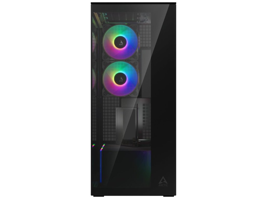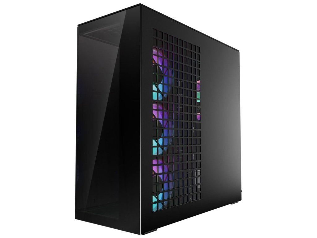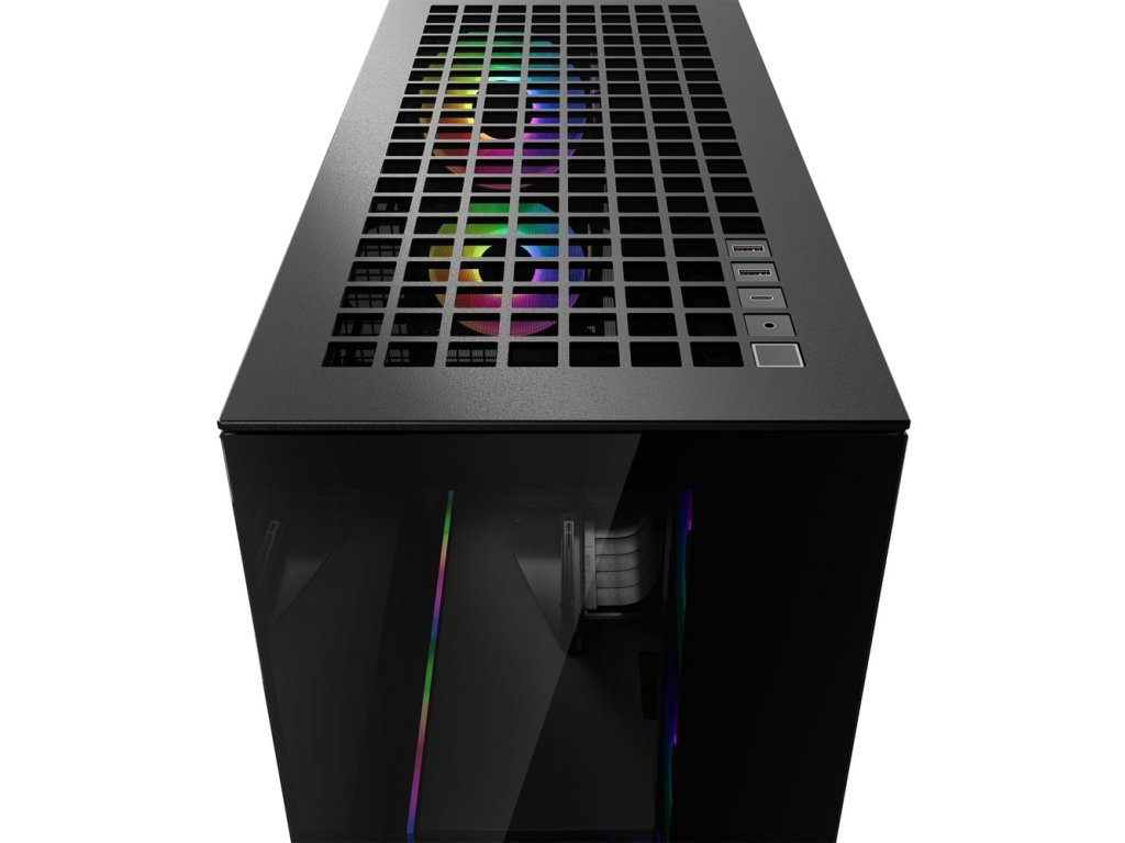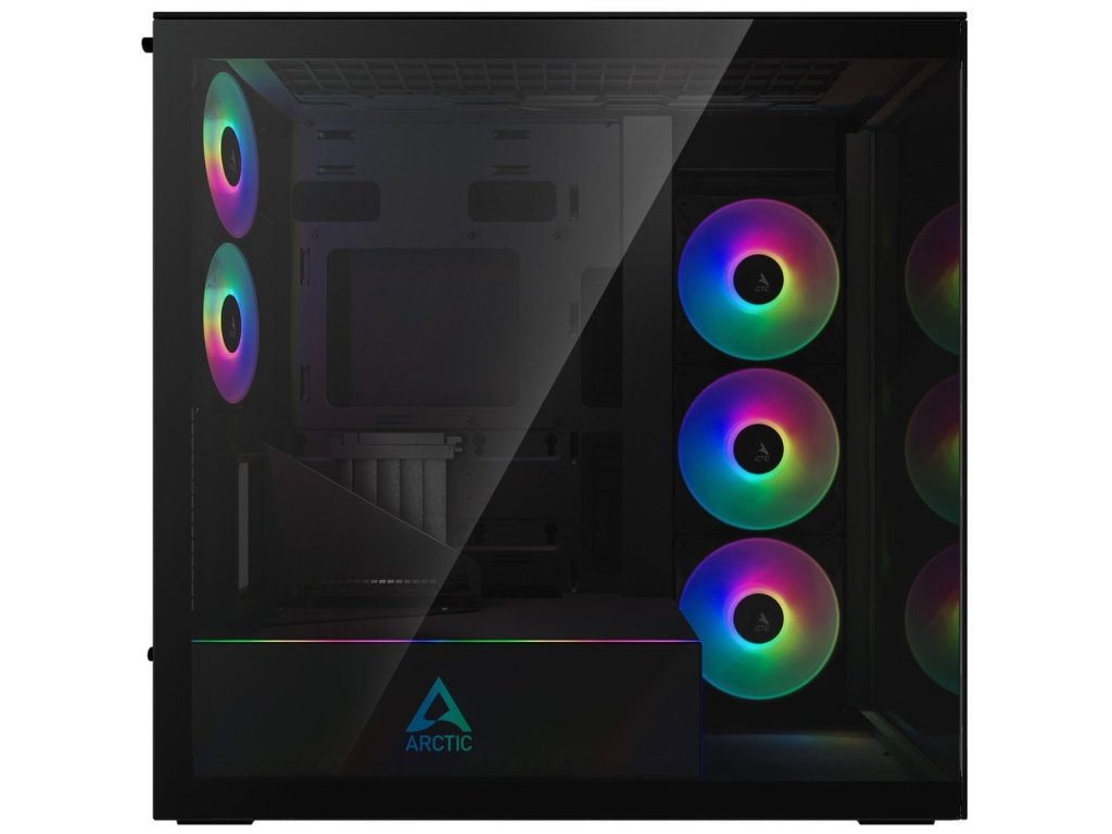 Skříň, Middle tower, bez zdroje, E-ATX, 2× 120mm ARGB + 3× 140mm ARGB ventilátor, USB-C, 2× USB 3.0, průhledná bočnice a přední panel, kit pro vertikální instalaci GPU, černá