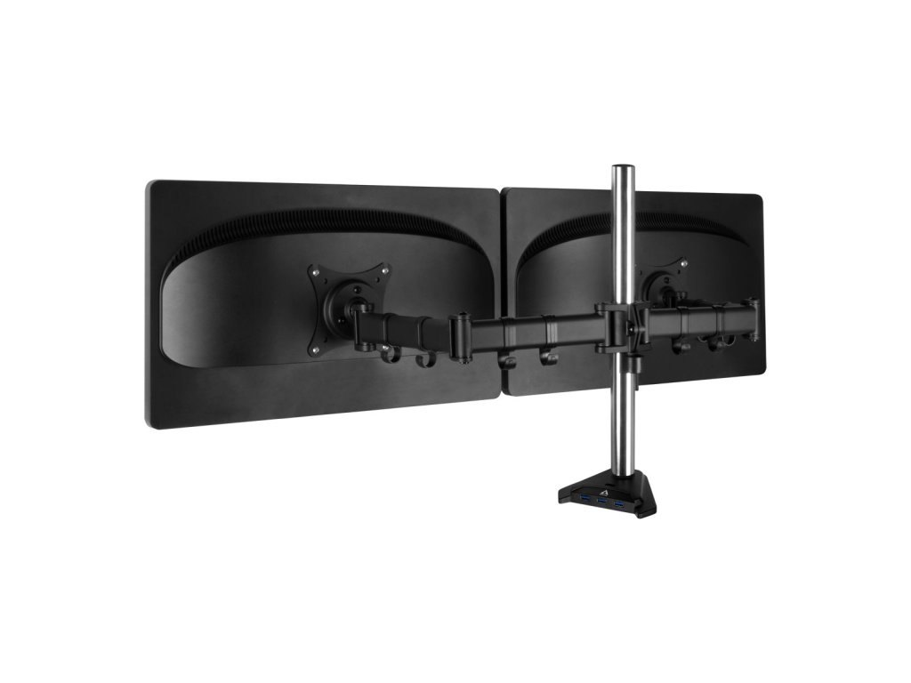 stolní držák pro dva LCD monitory, stojan, polohovatelný, vhodný do 34", zatížení až 15kg na jedno rameno, 4portový USB 3.0 hub, VESA 75x75 / 100x100