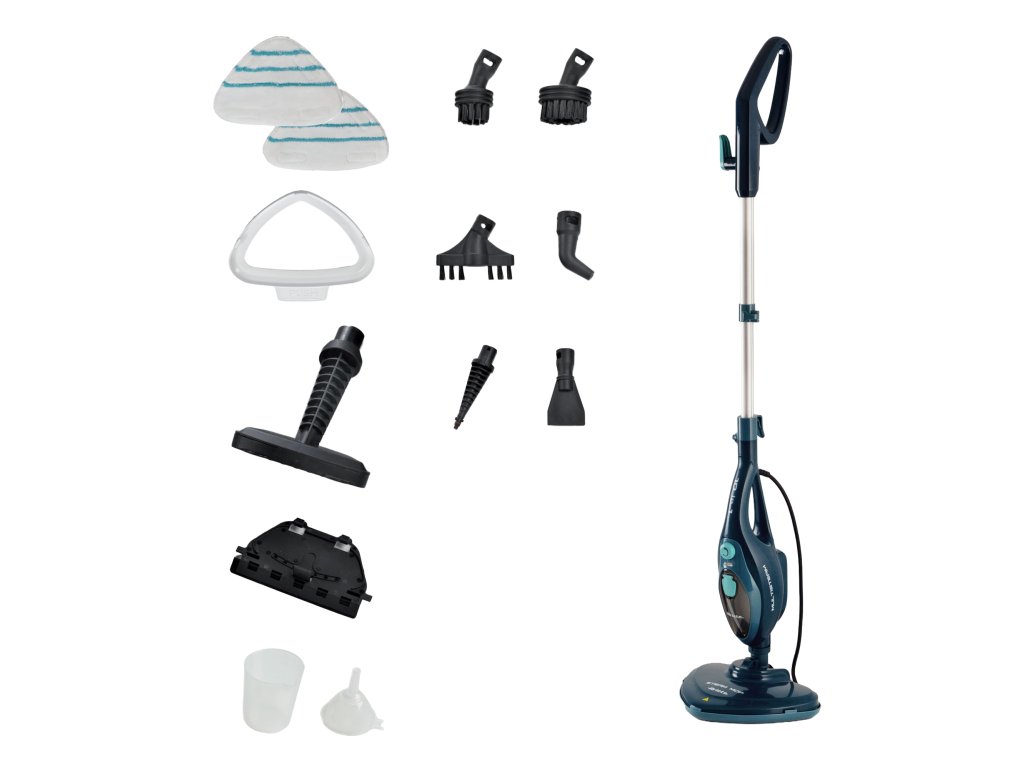 Parní mop 10v1 • Příkon 1500 W • Objem nádoby 350 ml • Nastavitelný výstup páry • Doba provozu až 20 minut • Bohaté příslušenství • Doba nahřátí 30 sekund