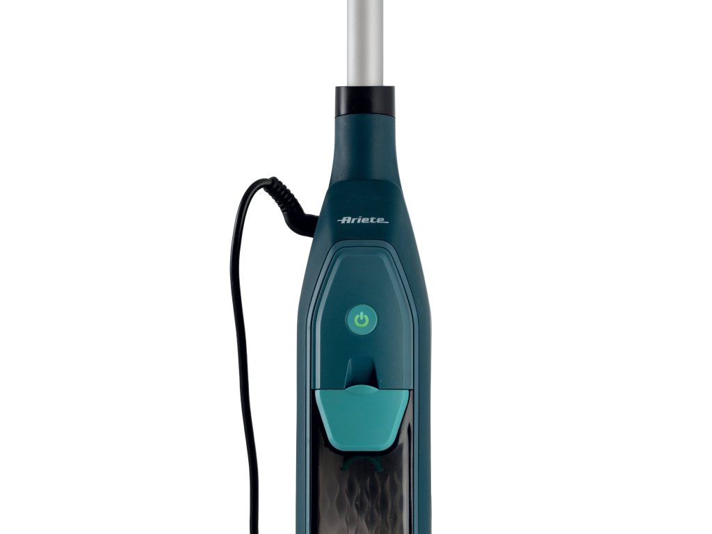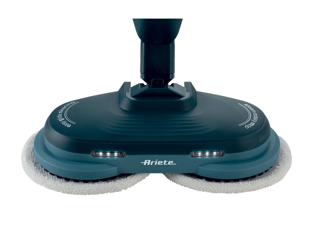 Parní mop • příkon 1200 W • Kloubová hlavice se dvěma rotujícími hadříky a osvětlením • Dvě rychlosti • Barevné kontrolky pro idikaci rychlosti • Zásobník na vodu 400 ml • Doba nahřátí 30 sekund