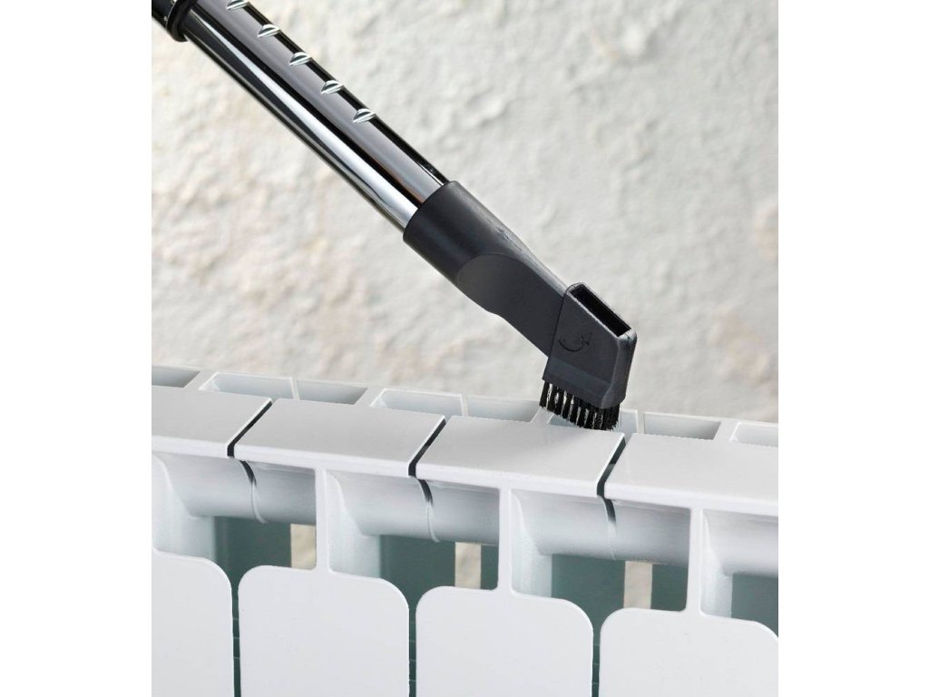Kovová teleskopická tyč je nastavitelná dle vašich požadavků a vysavač má prostor pro uložení příslušenství, které zahrnuje i štěrbinovou hubici s integrovaným kartáčem. Vysavač má jednoduché ovládání s tlačítkem ON / OFF.