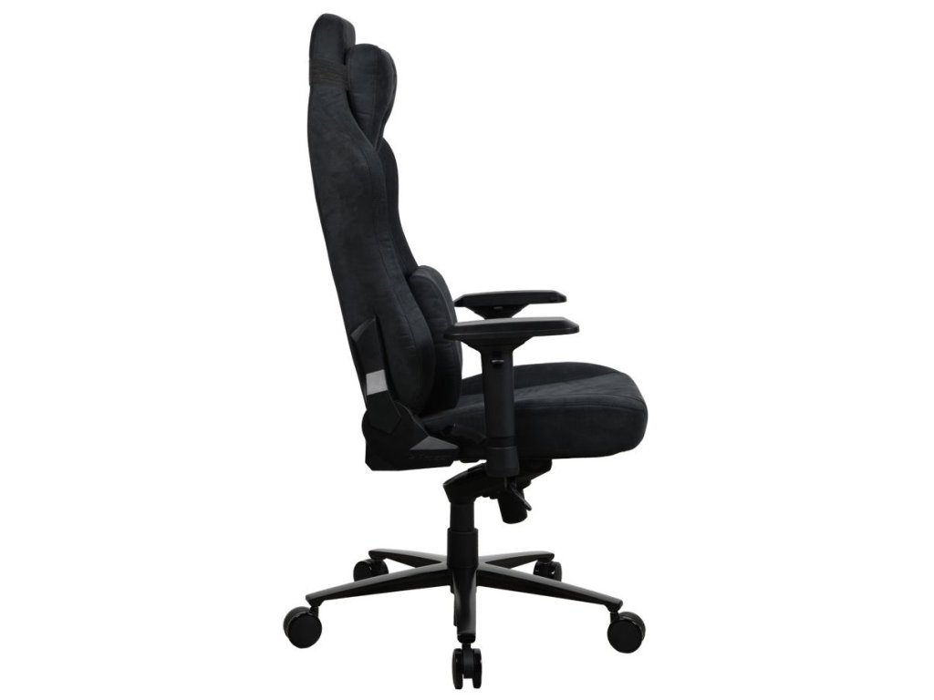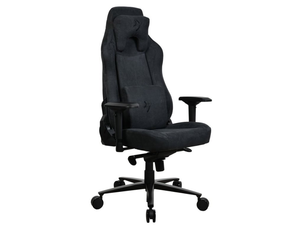 Herní židle speciálně vytvořená pro zlepšení ergonomie a komfortu při dlouhých hodinách strávených u počítače. Je potažena kvalitní tkaninou z mikrovlákna s velmi jemnou strukturou. Nastavitelná výška židle, opěrky rukou nastavitelné ve všech směrech a úhel sklonu opěradla až 165° zajistí maximální pohodlí. Samozřejmostí je možnost otáčení o 360° a houpací mechanismus. Součástí balení jsou i dva polštáře z paměťové pěny, které zajistí podporu páteře v krční a bederní části. Nosnost je díky robustnímu kovovému rámu a základně kol až 145 kg.