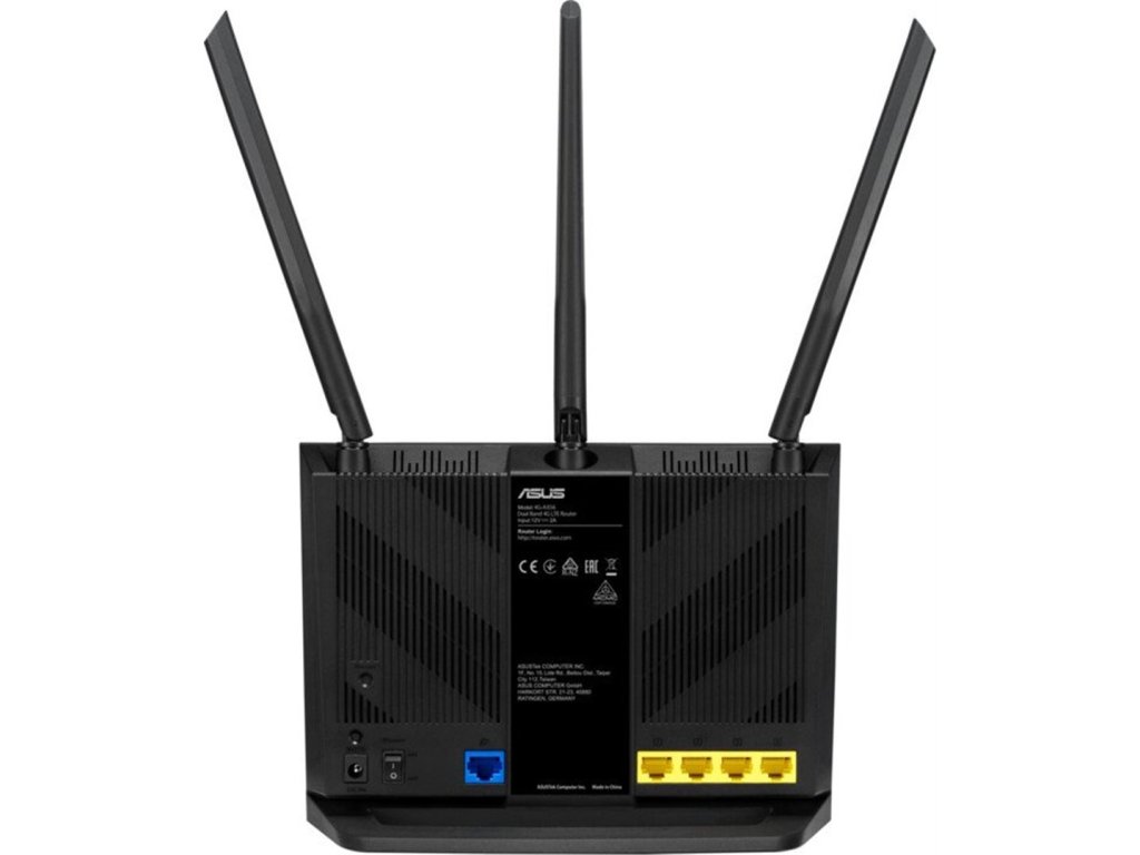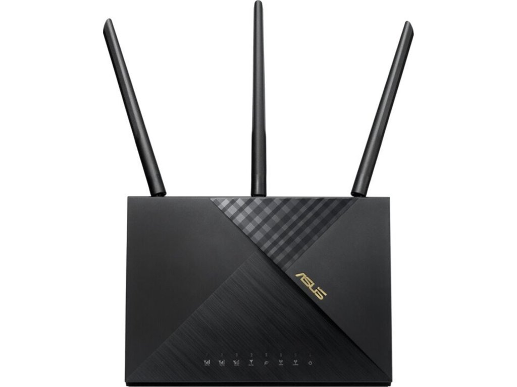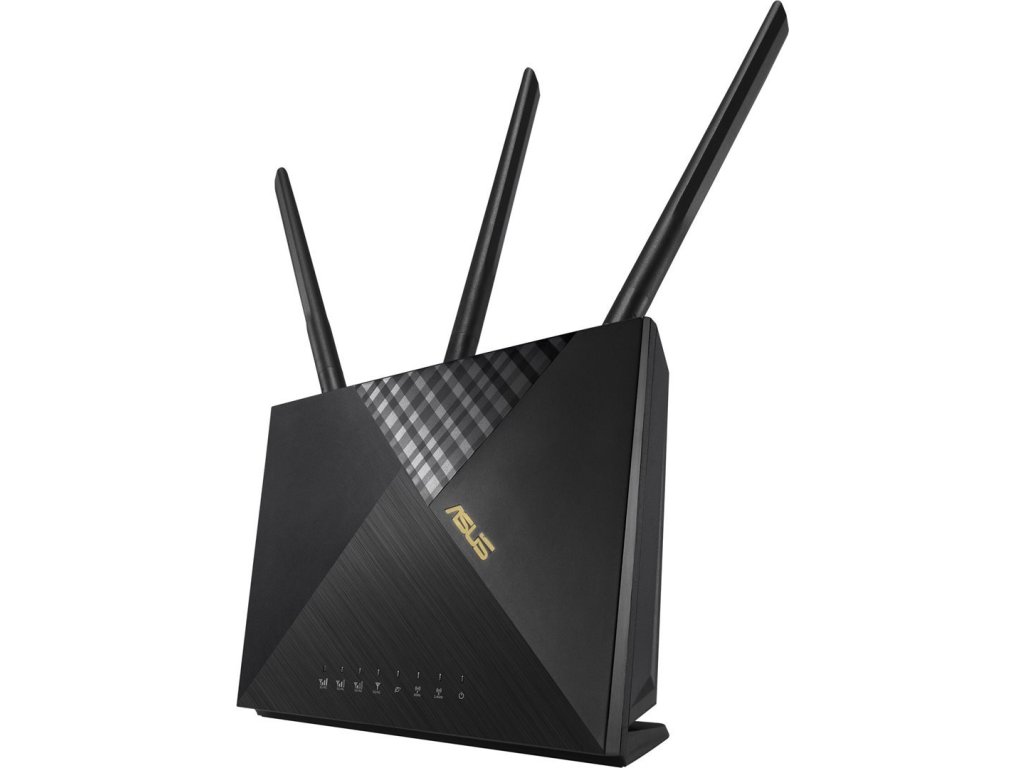 ASUS 4G-AX56 dvoupásmový WiFi router 6 AX1800 LTE Cat.6 300 Mb/s, zabezpečení sítě AiProtection Classic, rodičovská kontrola. ASUS 4G-AX56 je 2x2 dvoupásmový WiFi 6 LTE modemový router, který poskytuje šířku pásma 80 MHz a 1024-QAM pro dramaticky rychlejší bezdrátové připojení. S celkovou rychlostí sítě přibližně 1800 Mb/s - 574 Mb/s v pásmu 2,4 GHz a 1201 Mb/s v pásmu 5 GHz-je 4G-AX56 1,5krát rychlejší než WiFi 5 2x2 dvoupásmový modemový router LTE.