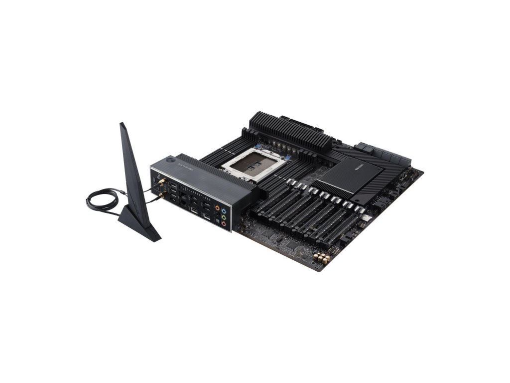 AMD WRX80 Ryzen™ Threadripper™ PRO extended-ATX workstation motherboard with Intel dual 10 G LAN, USB 3.2 Gen 2x2 Type-C port, 7 x PCIe 4.0 x16 slots, 3 x M.2 PCIe 4.0, ASMB9-iKVM, 2 x U.2 and 16 power stages
