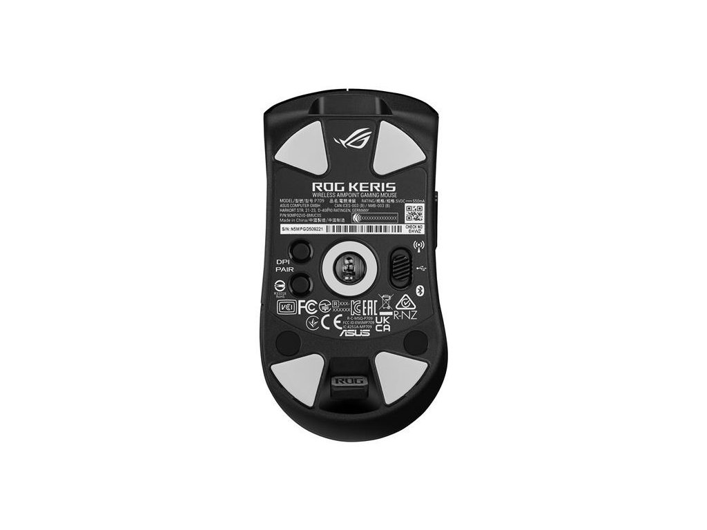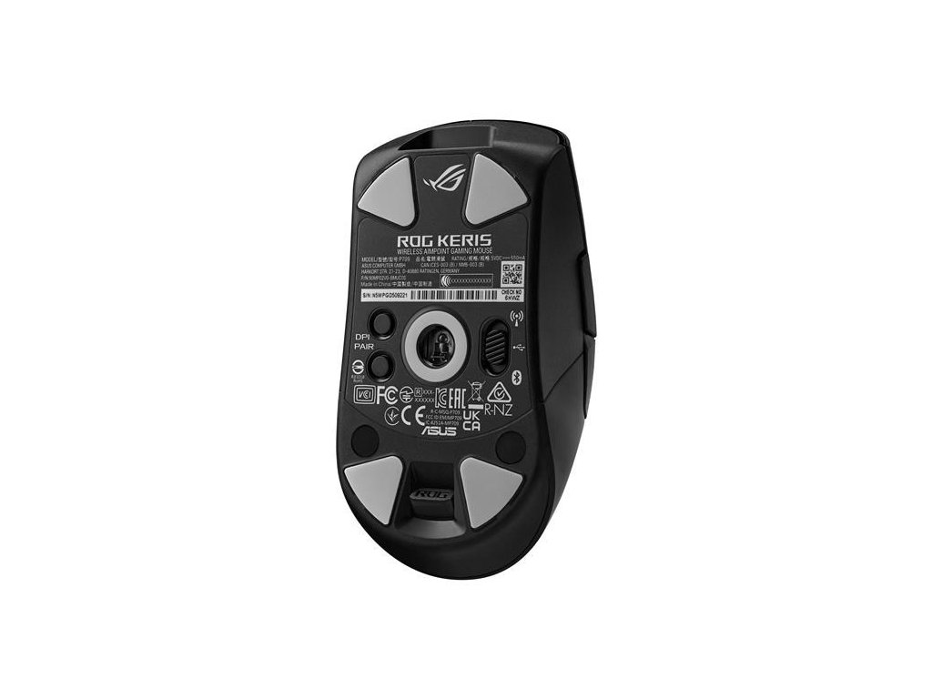 Lehká 75gramová bezdrátová herní myš RGB ROG Keris Wireless AimPoint je vybavena optickým senzorem ROG AimPoint s rozlišením 36 000 dpi, konektivitou ve třech režimech, bezdrátovou technologií ROG SpeedNova,