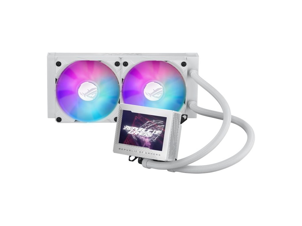 Buďte chladnější než cool s Ryujin III White Edition. Jeho nedotčený rám obsahuje rozsáhlý 3,5palcový LCD displej, který zobrazuje živé systémové statistiky, animované obrázky GIF nebo dokonce vaše vlastní umělecká díla. Nová pumpa Asetek 8. generace tiše udržuje nejnovější procesory Intel a AMD v chladu, zatímco vestavěný ventilátor Axial-tech pomáhá řídit teploty VRM základní desky. A chladicí kapalina uvnitř proudí 400 mm zesíleným potrubím a chladičem s vyšší kapacitou chlazeným dvěma magnetickými ventilátory ROG 120 mm ARGB, takže instalace a přizpůsobení je hračkou.