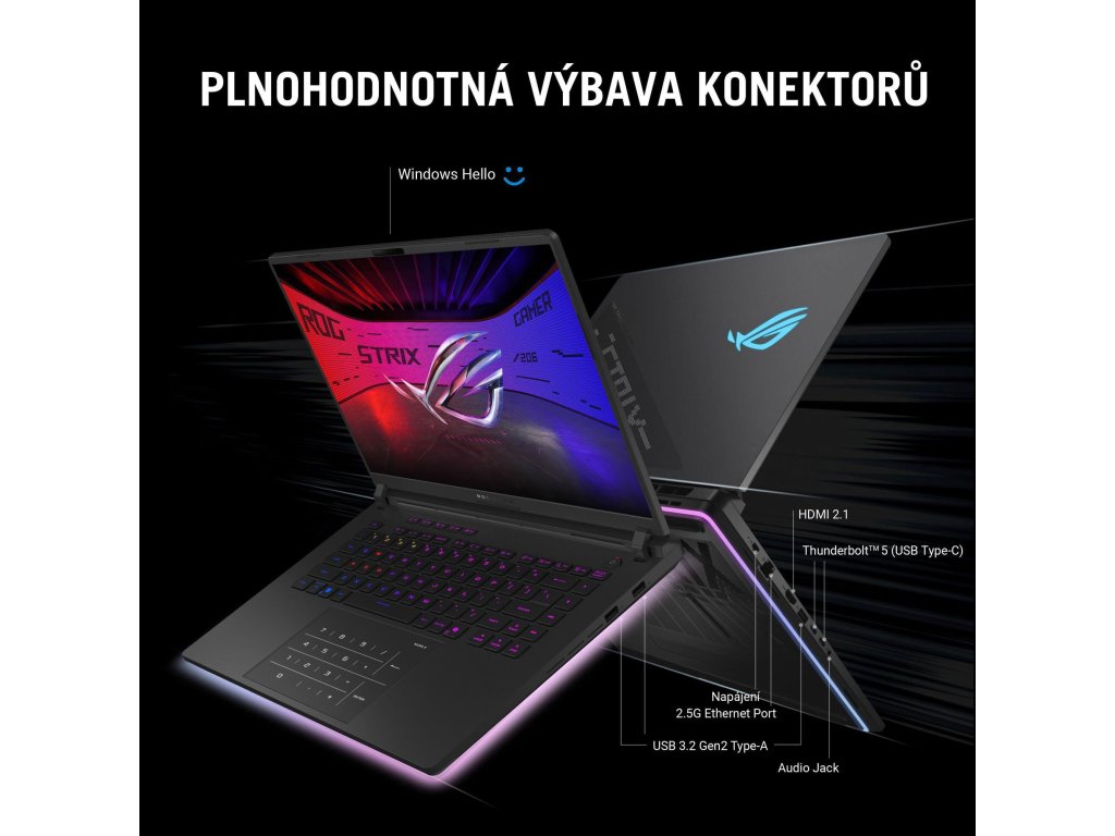 Herní notebook 16", 2560x1600, 240Hz, 16:10, 1200nits, Intel Core Ultra 9 275HX, 32GB DDR5-5600, 2TB PCIe 4.0 NVMe SSD, NVIDIA GeForce RTX 5080 s 16GB GDDR7, podsvícená klávesnice, Wi-Fi 7, Bluetooth, 2x Thunderbolt 5, 3x USB 3.2 Gen 2, Windows 11 Pro.