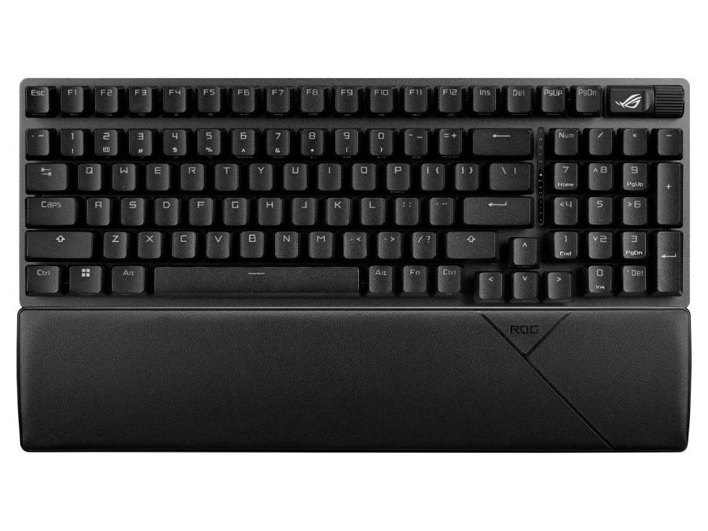 Herní klávesnice ROG Strix Scope II X s mechanickými spínači ROG NX V2 s možností výměny za provozu, pěnovým tlumením zvuku, zdvojenými klávesami PBT nebo ABS s UV povlakem, streamovacími klávesami, multifunkčními ovládacími prvky, třemi úhly sklonu a opěrkou zápěstí.