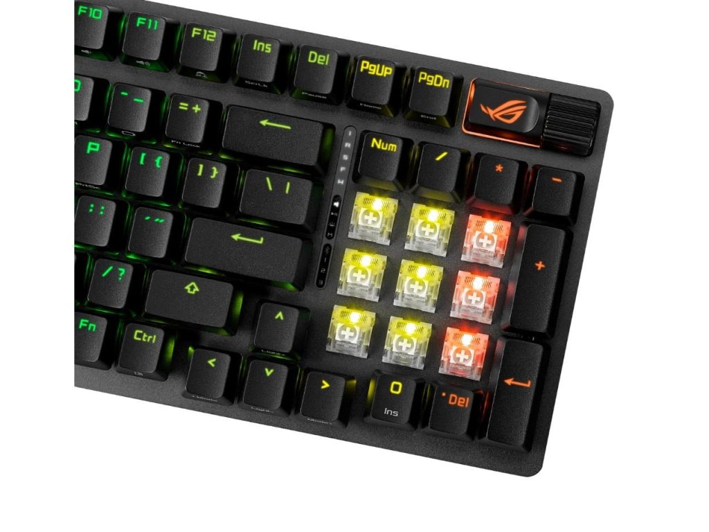 PBT / ABS s UV povlakem: Odolné zdvojené klávesy ROG PBT nebo klávesy ABS s UV povlakem nabízejí prvotřídní pocit a odolnost proti lesku