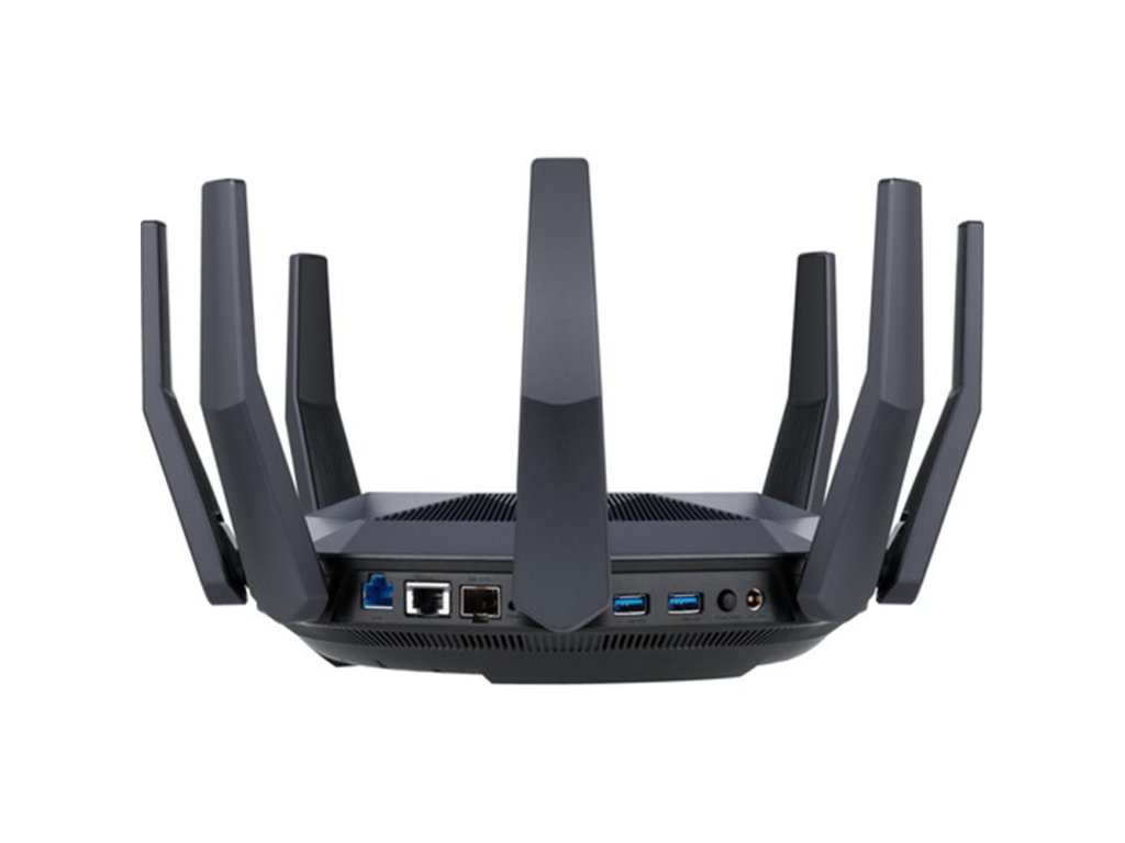 Asus RT-AX89X dvoupásmový směrovač AX6000 Dual Band WiFi 6 (802.11ax) podporující technologii MU-MIMO a OFDMA, se síťovým zabezpečením AiProtection Pro poháněným technologií Trend Micro a Adaptive QoS.