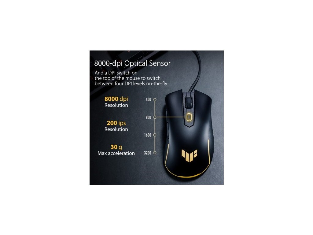ASUS TUF Gaming M3 Gen II je ultralehká kabelová herní myš s hmotností pouhých 59 gramů, odolností vůči prachu a vodě garantovanou stupněm krytí IP56, antibakteriální ochranou ASUS Antibacterial Guard, snímačem s rozlišením 8000 dpi, spínači s životností 60 milionů kliknutí, teflonovými nožičkami a šesti programovatelnými tlačítky.