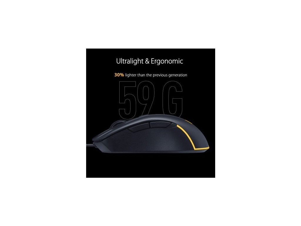 herní myš, drátová USB. Ultralehký, ergonomický design: Váží pouhých 59 gramů, s pláštěm speciálně vytvořeným pro praváky