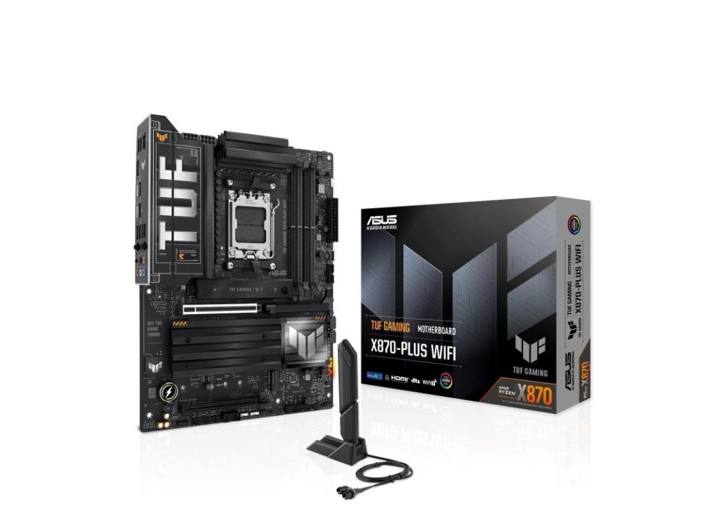 ASUS TUF GAMING X870-PLUS WIFI využívá všechny výhody nejnovějších procesorů AMD Ryzen™ a kombinuje je s funkcemi určenými pro hraní her a osvědčenou odolností. Tato základní deska je vybavena komponenty vojenského standardu, vylepšeným řešením napájení a komplexním systémem chlazení.