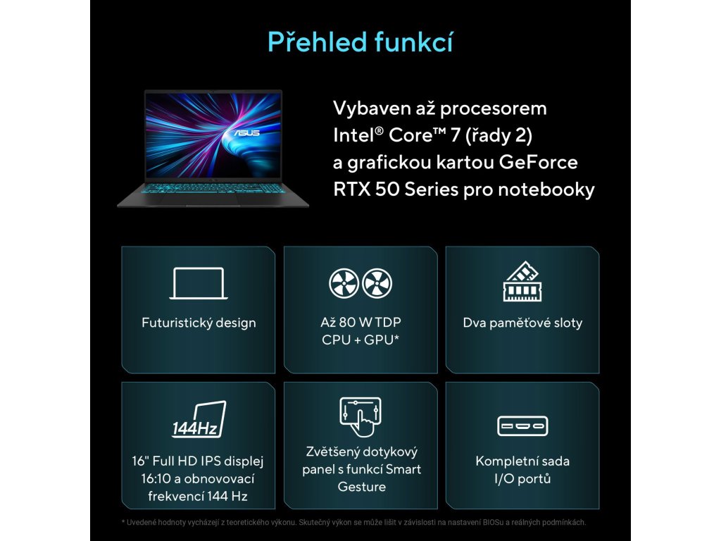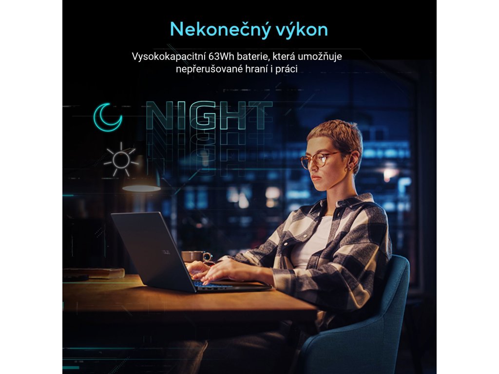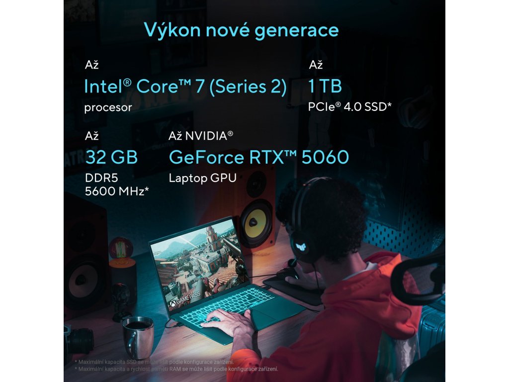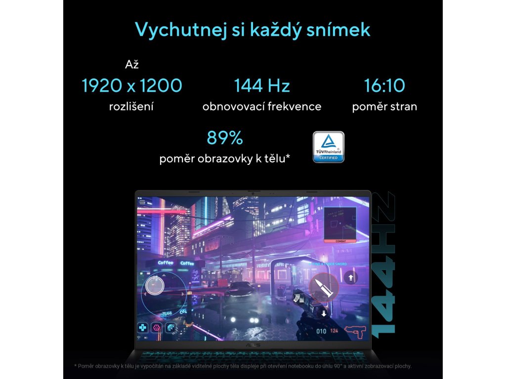 Herní notebook 16" LED antireflexní 1920x1200 144Hz, Intel Core 5 210H, 32GB RAM DDR5, 1TB SSD, NVIDIA GeForce RTX 4050 s 6GB 115 W, podsvícená klávesnice, webkamera, USB 3.2 Gen 1, USB-C, WiFi 6, Bluetooth, hmotnost 1,95 kg, Windows 11 Home.