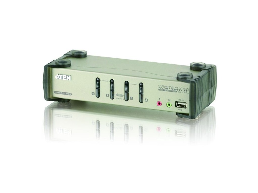 - 4-port KVM přepínač s USB 2.0 a 2.1 surround sound audio podporou