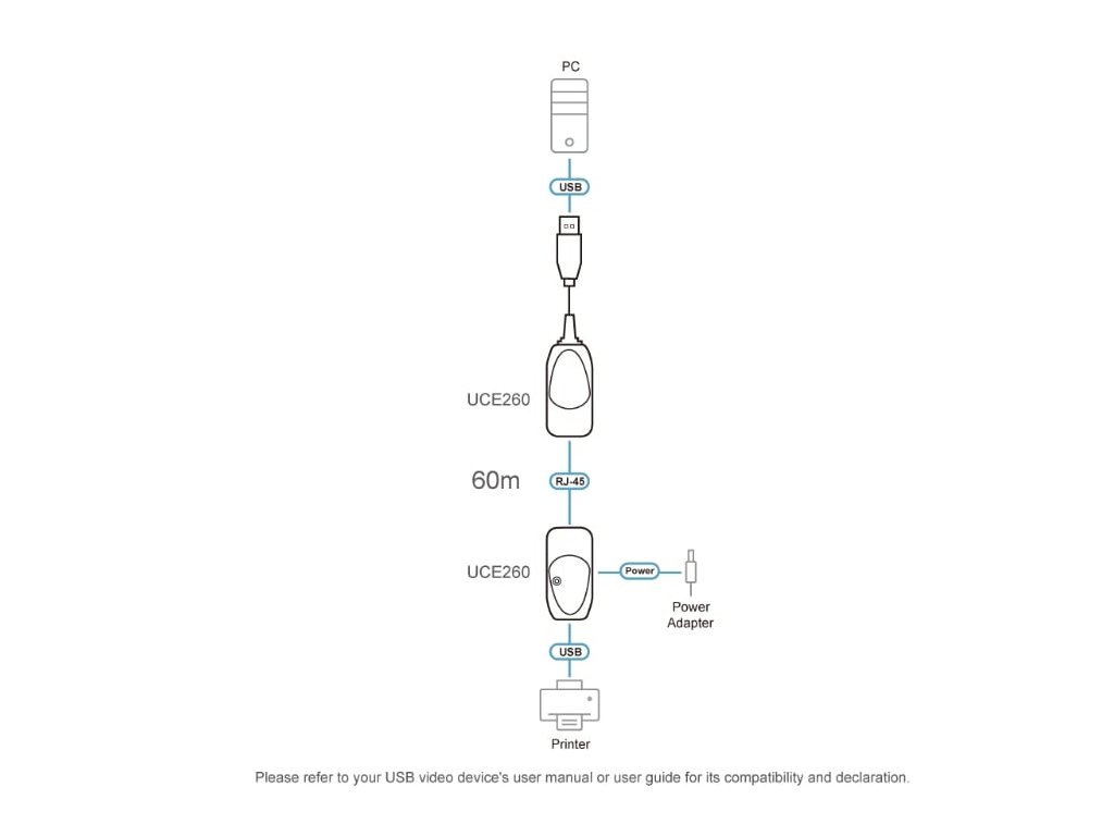 Pomocí levného kabelu Cat5/Cat5e/Cat6 se dosáhne ekonomického a efektivního řešení. Nyní můžete umístit vaše kamery, tiskárny, webové kamery, klávesnice/myši nebo jiné USB zařízení tam kam vy opravdu chcete.