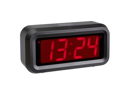 Digitální budík – velké červené LED číslice s možností nastavení jasu (3 úrovně) a funkcí automatického ztlumení displeje, budík s funkcí opakovaného buzení, stálé podsvícení displeje bez síťového adaptéru díky úsporné LED technologii