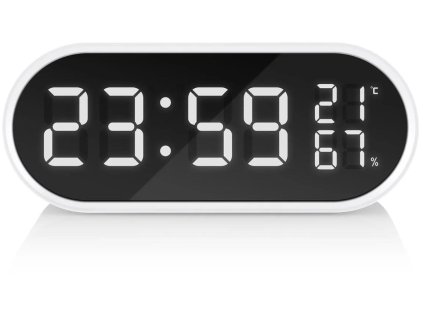Digitální budík – dva budící časy, nastavitelný budík (každý den, víkend, pracovní dny), funkce opakovaného buzení, měří vnitřní teplotu, zobrazuje datum a zkratku dne v týdnu, automatické podsvícení díky světelnému senzoru, tlačítko zapnutí/vypnutí