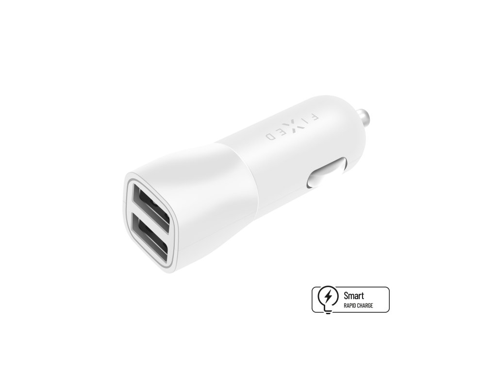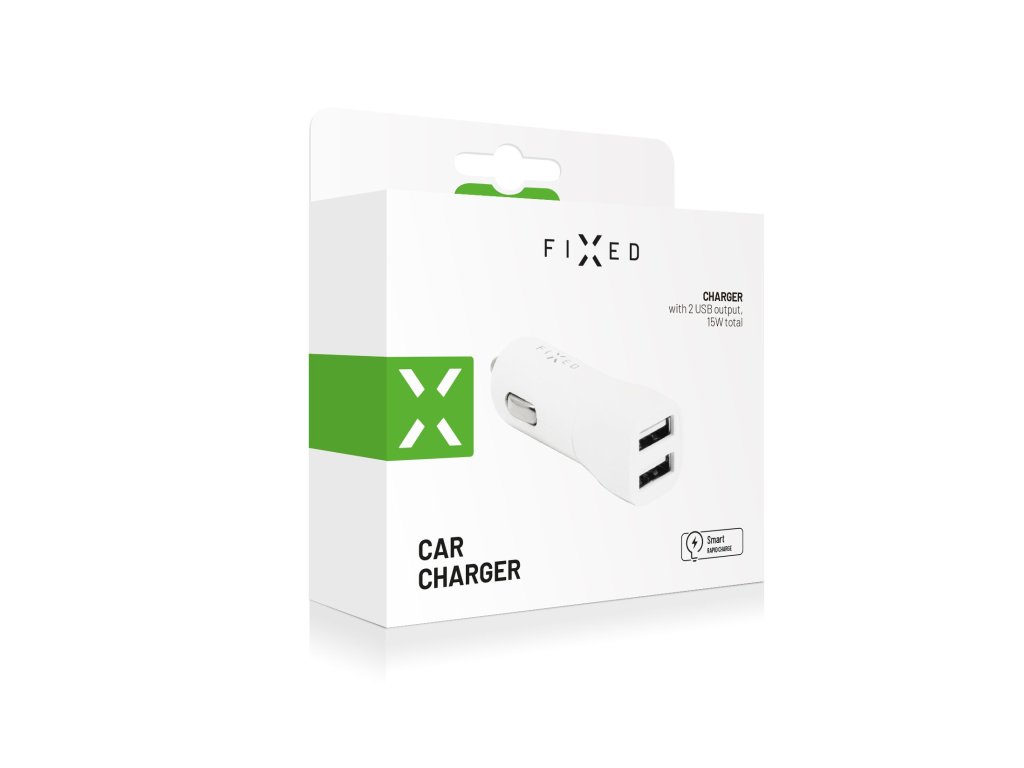 Autonabíječka FIXED s 2xUSB výstupem, 15W Smart Rapid Charge, bílá