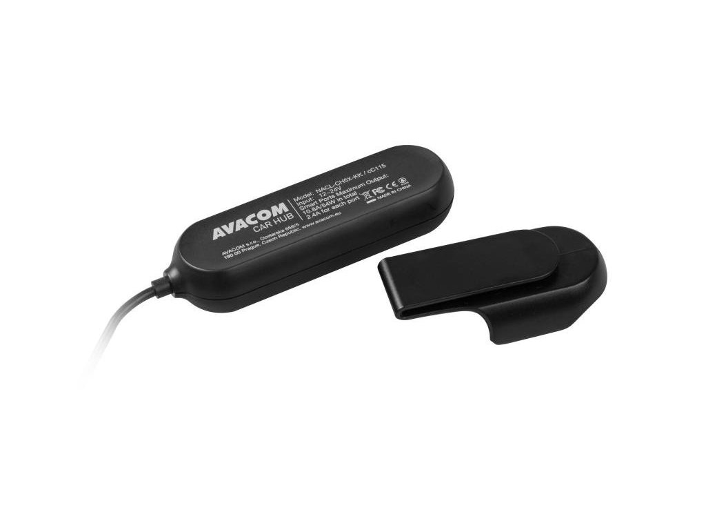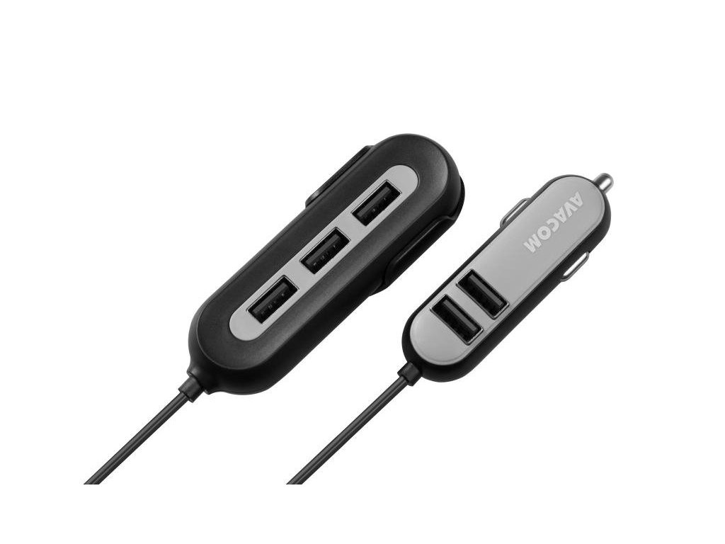 AVACOM CarHUB nabije 5 přístrojů současně. Má dvě části, které jsou spojené 1,5 m dlouhým kabelem. První část se dvěma USB výstupy lze zapojit do zásuvky autozapalovače. Další tři USB výstupy se dají pomocí praktického klipu připevnit za zadní sedadlo, což umožní nabíjení všem cestujícím v autě. Vysoký výstupní proud nabíječky (2,4 A na port a 10,8 A celkově) a výkon 54 W zaručují bezproblémové nabíjení náročných zařízení - smartphonů, tabletů nebo navigací.