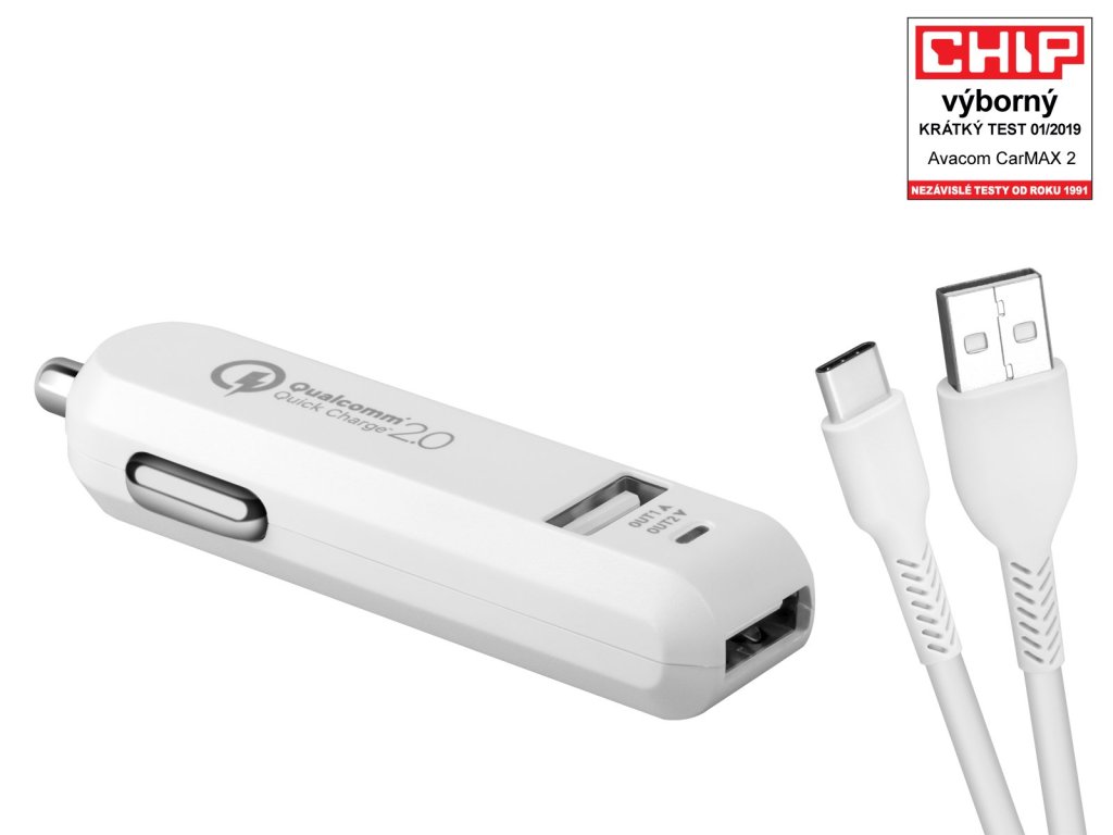 AVACOM CarMAX 2 nabíječka do auta 2x Qualcomm Quick Charge 2.0, bílá barva (USB-C kabel)