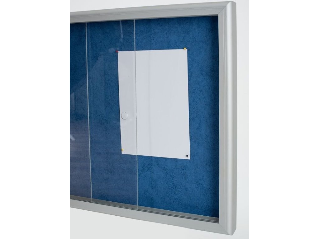 Uzamykatelná vnitřní vitrína s posuvnými dvířky a masivním hliníkovým rámem. Vhodná pro efektivní předání důležitých informací.