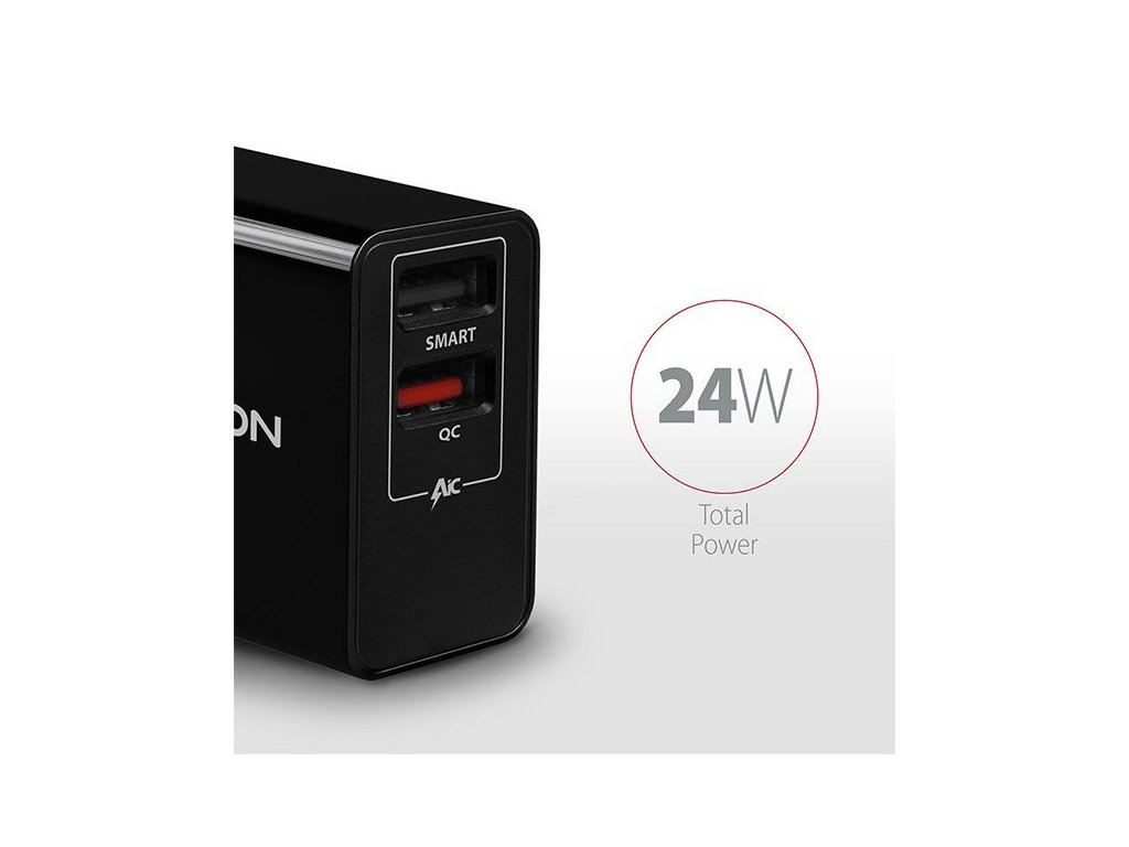 • celkový maximální výkon 24W (QC port 18W + SMART port 6W)