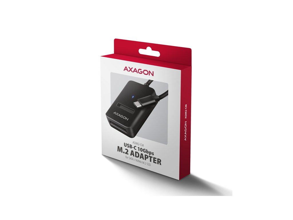 AXAGON ADM2-CM USB-C 10Gbps - M.2 NVMe & SATA SSD adaptér, kabel USB-C 10cm