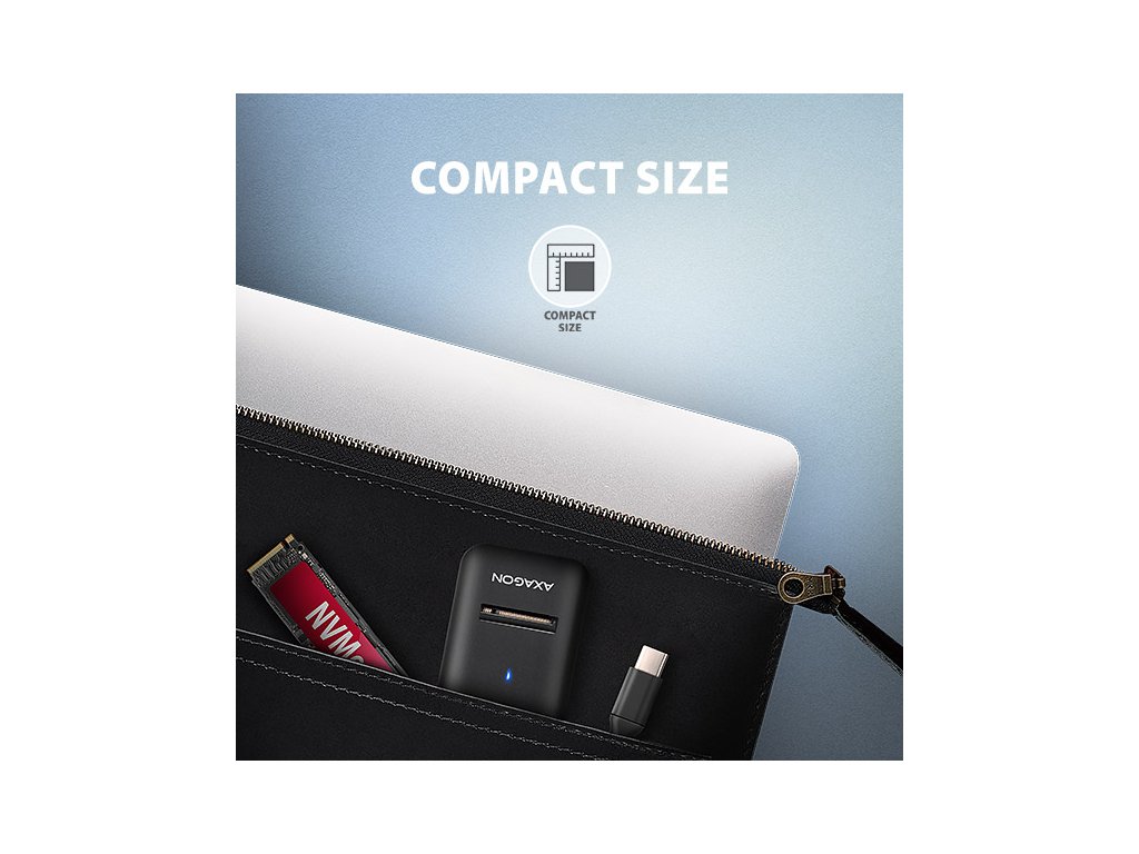 Díky malým rozměrům může být kdykoli pohotově po ruce. Adaptér nebrání odvodu tepla z disku, to prodlužuje jeho životnost a zároveň brání před zpomalováním rychlosti disku, tzv. „Thermal Throttling“. Tuto redukci z USB-C na M.2 disk je možné použít jak s počítači a notebooky, tak s mobilními telefony a tablety.