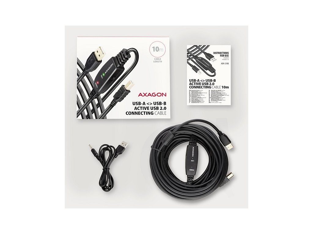 AXAGON ADR-210B, USB 2.0 A-M -> B-M aktivní propojovací / repeater kabel, 10m