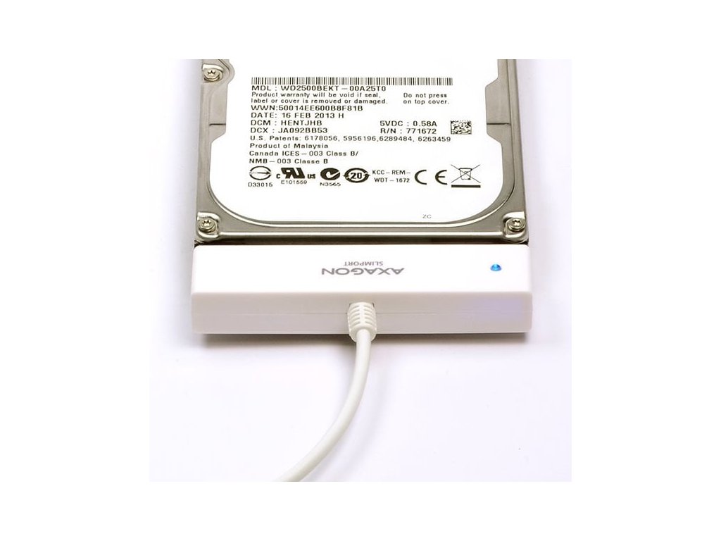 Kompaktní adaptér AXAGON ADSA-1S SLIMport s USB 2.0 rozhraním určený pro snadné připojení 2.5" SATA disku.