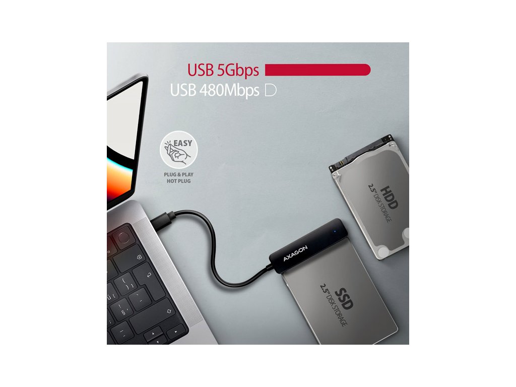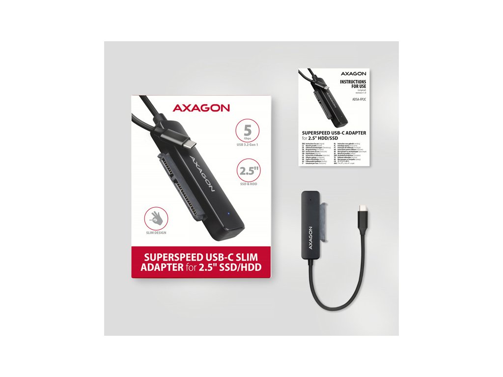 AXAGON ADSA-FP2C USB-C 5Gbps - SATA 6G 2.5" SSD/HDD SLIM adaptér